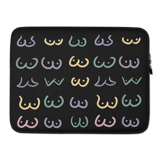Colourful Boobs on Black Background, Laptop Case, LGBTQ Gift, Boobie Lover Gift, Boobs Merch, Feminist Art, Boobs Gifts, 13 inch laptop case, 15 inch laptop case