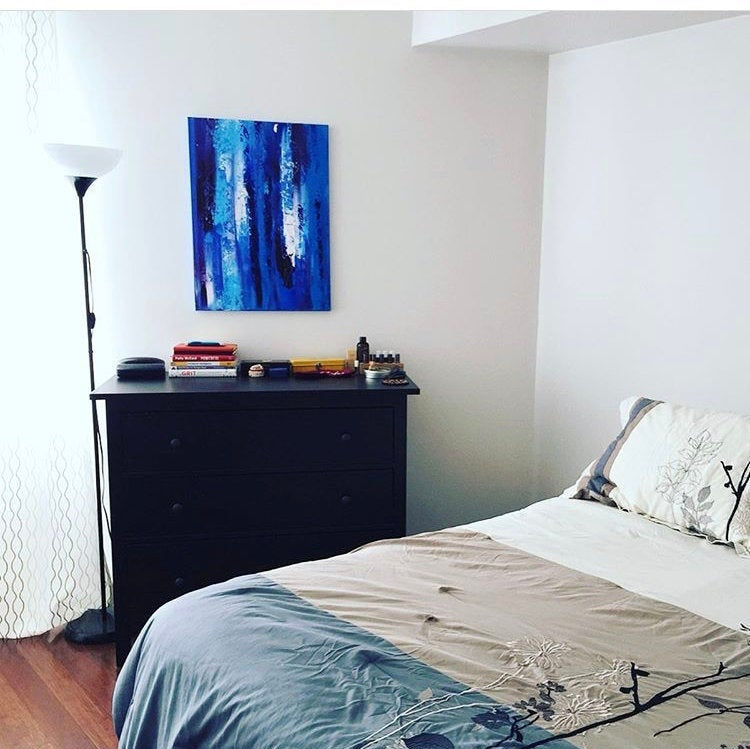 This painting is absolutely beautiful. One of my favorites that I have done so far. This one is inspired by that cold winter day when the sun is about to set. Feels very calming, cool and refreshing. This painting will be sure to pop in your interior whether it be an office or a home space!
