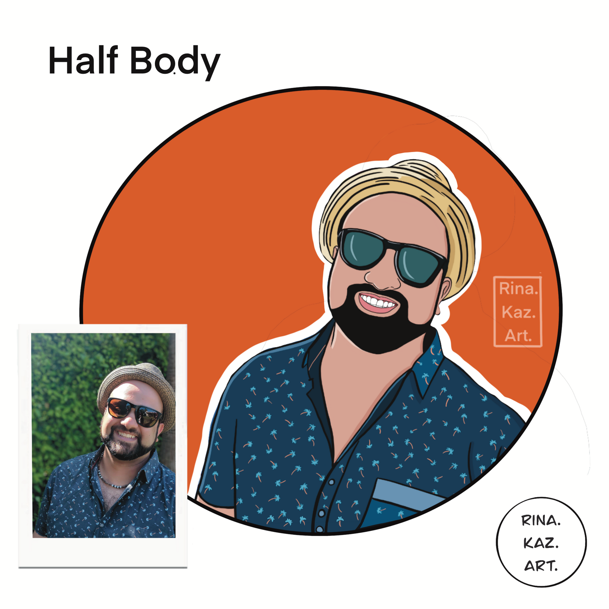 Choose from a close up (face only) or a half body option. All drawings will include a one colour circle background as per example. You can choose the colour you'd prefer in your email or note to me.