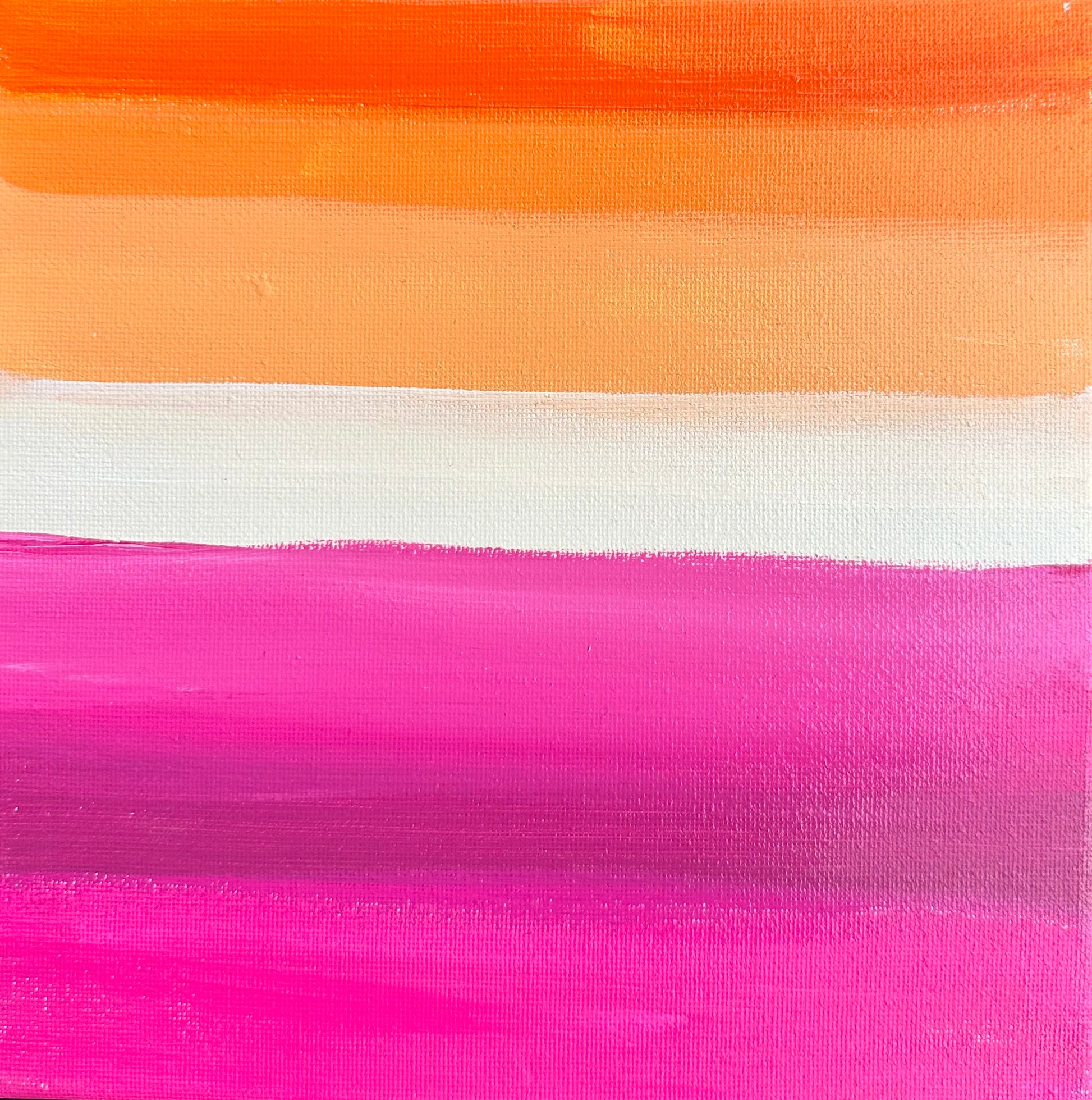 Custom Lesbian Flag Painting by Rina Kazavchinski hand painted on stretched canvas. This painting makes a lovely statement piece and is a great gift item!