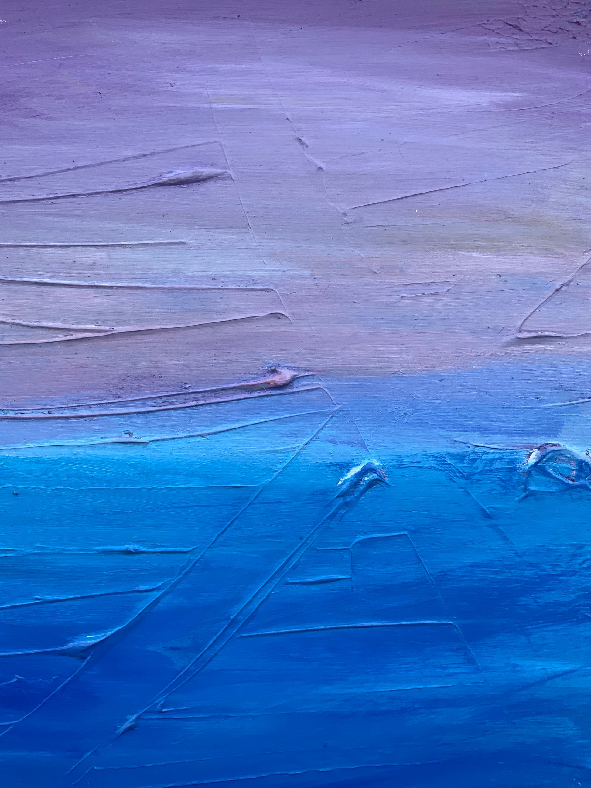 This one is inspired by that romantic sunset you may have been lucky to see on vacation on a cruise or on the beach. Feels very calming, cool and refreshing. This painting will be sure to pop in your interior whether it be an office or a home space!